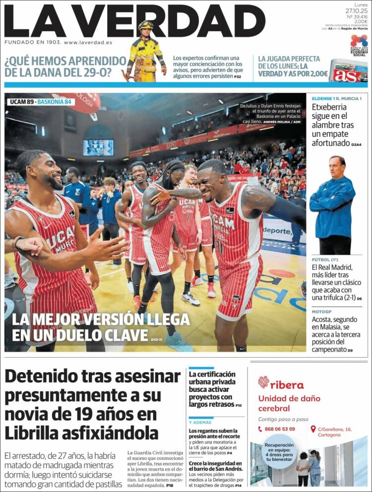 Portada del diario LA VERDAD DE MURCIA del día 27/10/2025 News Europa27 octubre, 2025 Portada del diario LA VERDAD DE MURCIA del día 27/10/2025