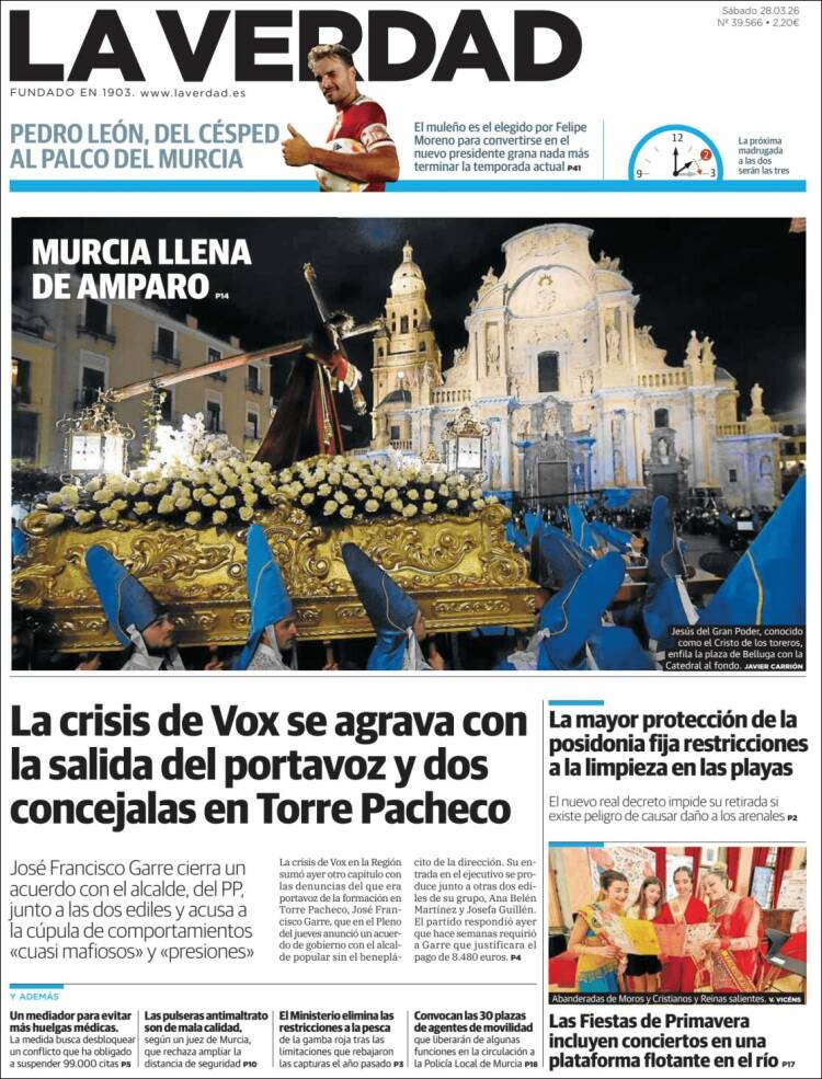 Portada del diario LA VERDAD DE MURCIA del día 28/03/2026 News Europa28 marzo, 202628 marzo, 2026 Portada del diario LA VERDAD DE MURCIA del día 28/03/2026