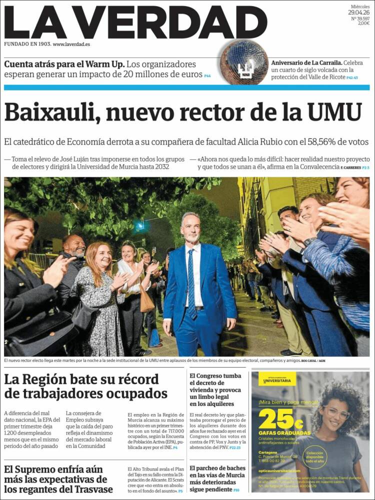 Portada del diario LA VERDAD DE MURCIA del día 29/04/2026 News Europa29 abril, 202629 abril, 2026 Portada del diario LA VERDAD DE MURCIA del día 29/04/2026