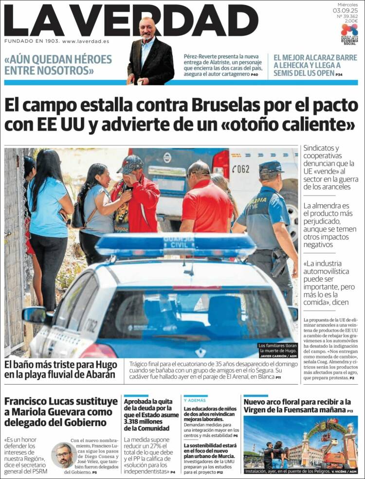 Portada del diario LA VERDAD DE MURCIA del día 3/09/2025 News Europa3 septiembre, 2025 Portada del diario LA VERDAD DE MURCIA del día 3/09/2025