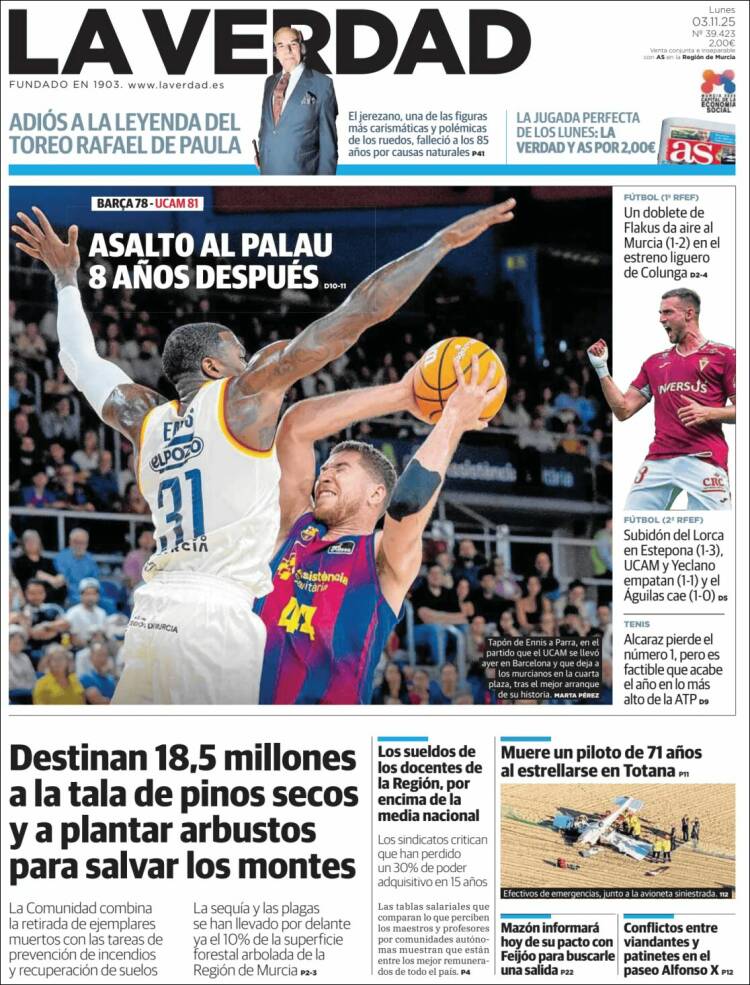 Portada del diario LA VERDAD DE MURCIA del día 3/11/2025 News Europa3 noviembre, 2025 Portada del diario LA VERDAD DE MURCIA del día 3/11/2025