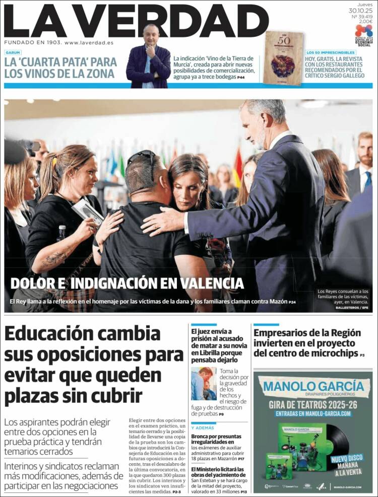 Portada del diario LA VERDAD DE MURCIA del día 30/10/2025 News Europa30 octubre, 2025 Portada del diario LA VERDAD DE MURCIA del día 30/10/2025
