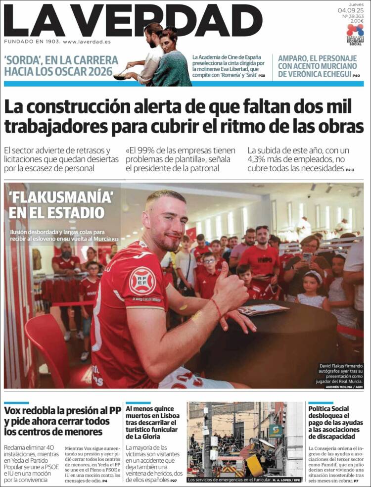Portada del diario LA VERDAD DE MURCIA del día 4/09/2025 News Europa4 septiembre, 2025 Portada del diario LA VERDAD DE MURCIA del día 4/09/2025