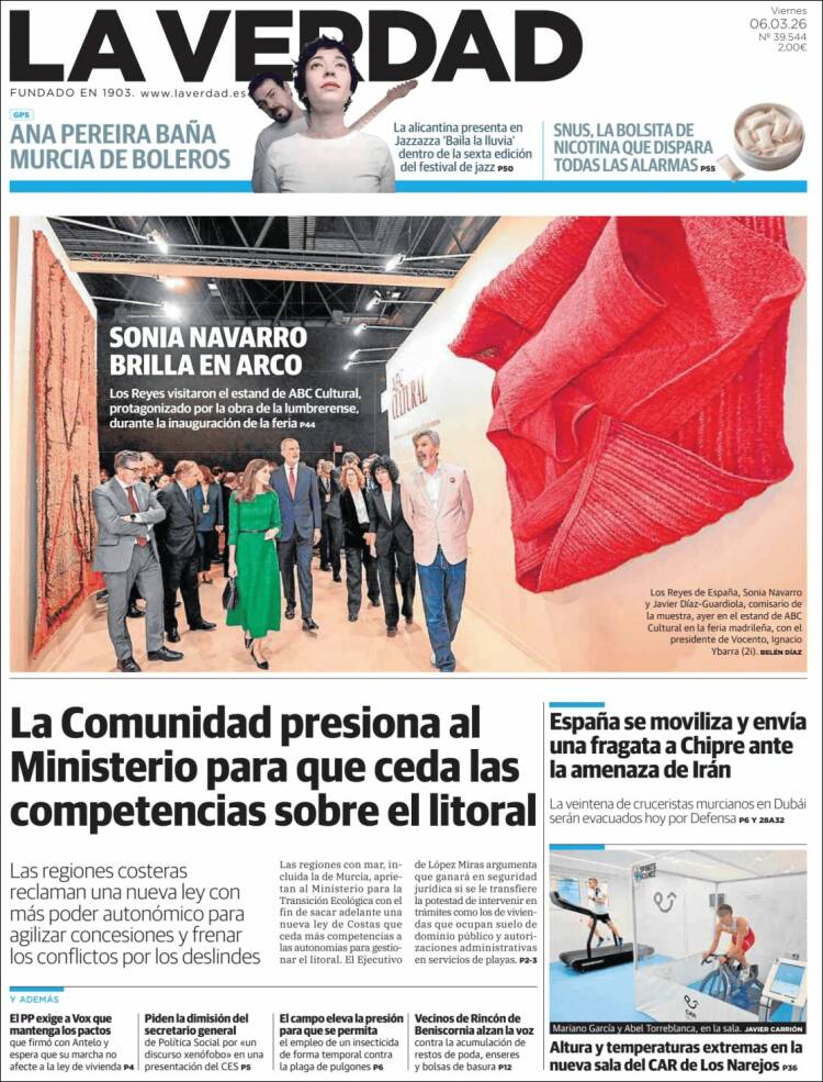 Portada del diario LA VERDAD DE MURCIA del día 6/03/2026 News Europa6 marzo, 2026 Portada del diario LA VERDAD DE MURCIA del día 6/03/2026