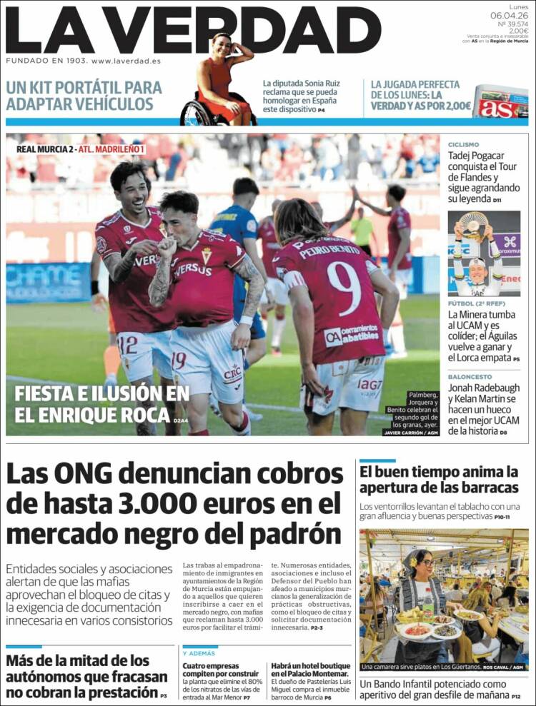 Portada del diario LA VERDAD DE MURCIA del día 6/04/2026 News Europa6 abril, 2026 Portada del diario LA VERDAD DE MURCIA del día 6/04/2026