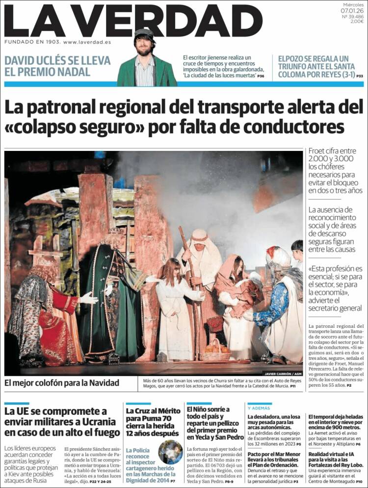 Portada del diario LA VERDAD DE MURCIA del día 7/01/2026 News Europa7 enero, 2026 Portada del diario LA VERDAD DE MURCIA del día 7/01/2026