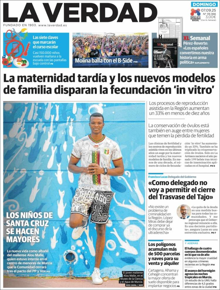 Portada del diario LA VERDAD DE MURCIA del día 7/09/2025