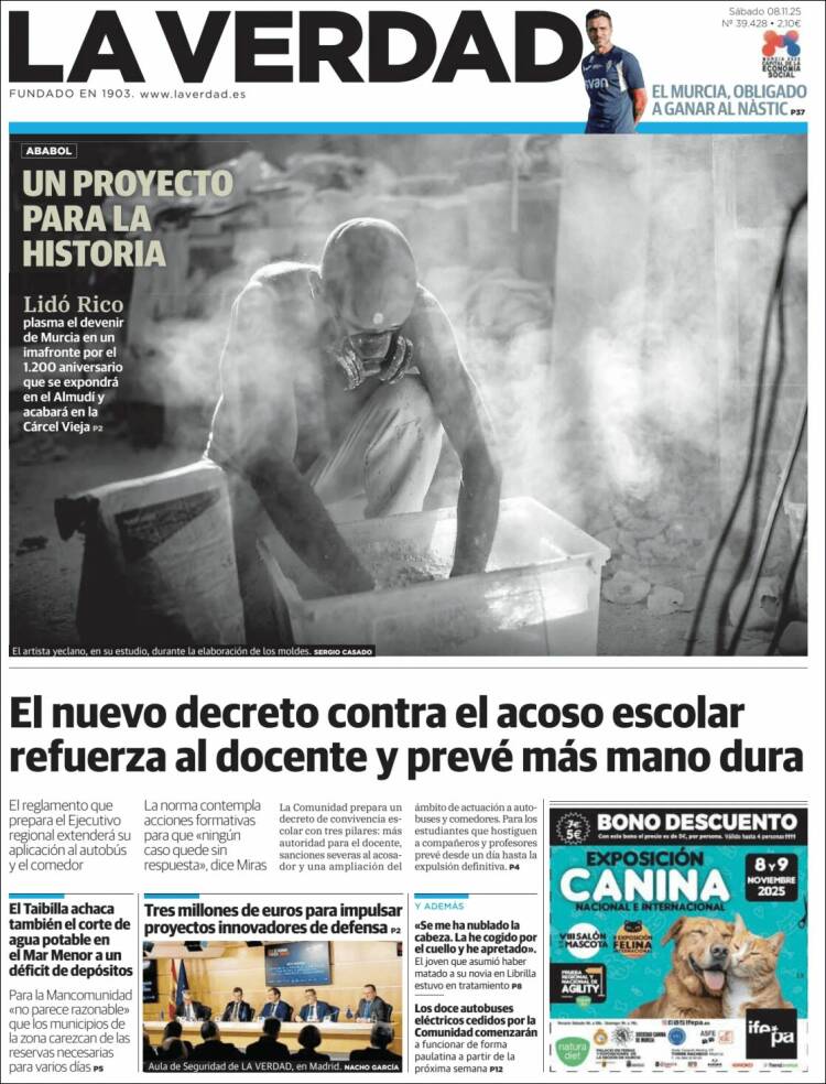 Portada del diario LA VERDAD DE MURCIA del día 8/11/2025 News Europa8 noviembre, 2025 Portada del diario LA VERDAD DE MURCIA del día 8/11/2025