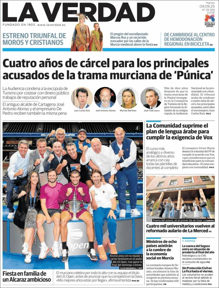 Portada del diario LA VERDAD DE MURCIA del día 9/09/2025 News Europa9 septiembre, 2025 Portada del diario LA VERDAD DE MURCIA del día 9/09/2025