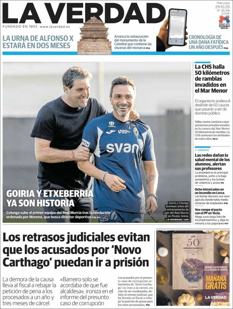 Portada del diario LA VERDAD DE MURCIA del día 29/10/2025