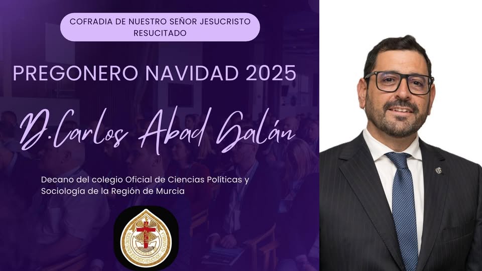 Con enorme emoción y responsabilidad como Pregonero de la Navidad 2025 de #Alcantarilla, anunciaré la llegada de la etapa más bonita del año. ¡Gracias a la Cofradia de Nuestro Señor…