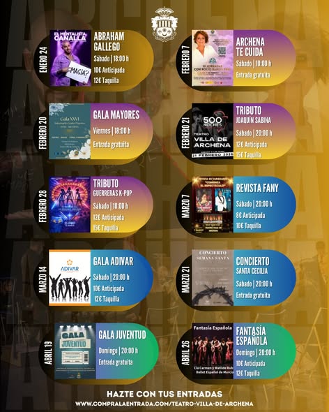 ¡Ya está aquí la programación del Teatro Villa de Archena! De enero a abril, disfruta de una agenda cargada de cultura, música, humor y grandes espectáculos. Consigue tus entradas en…