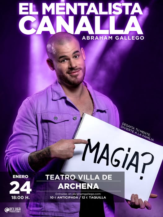 Este sábado, el Teatro Villa de Archena se llena de misterio, humor y sorpresas con Abraham Gallego ¿Te atreves a descubrir lo que pasa por tu mente? Sábado | Teatro…