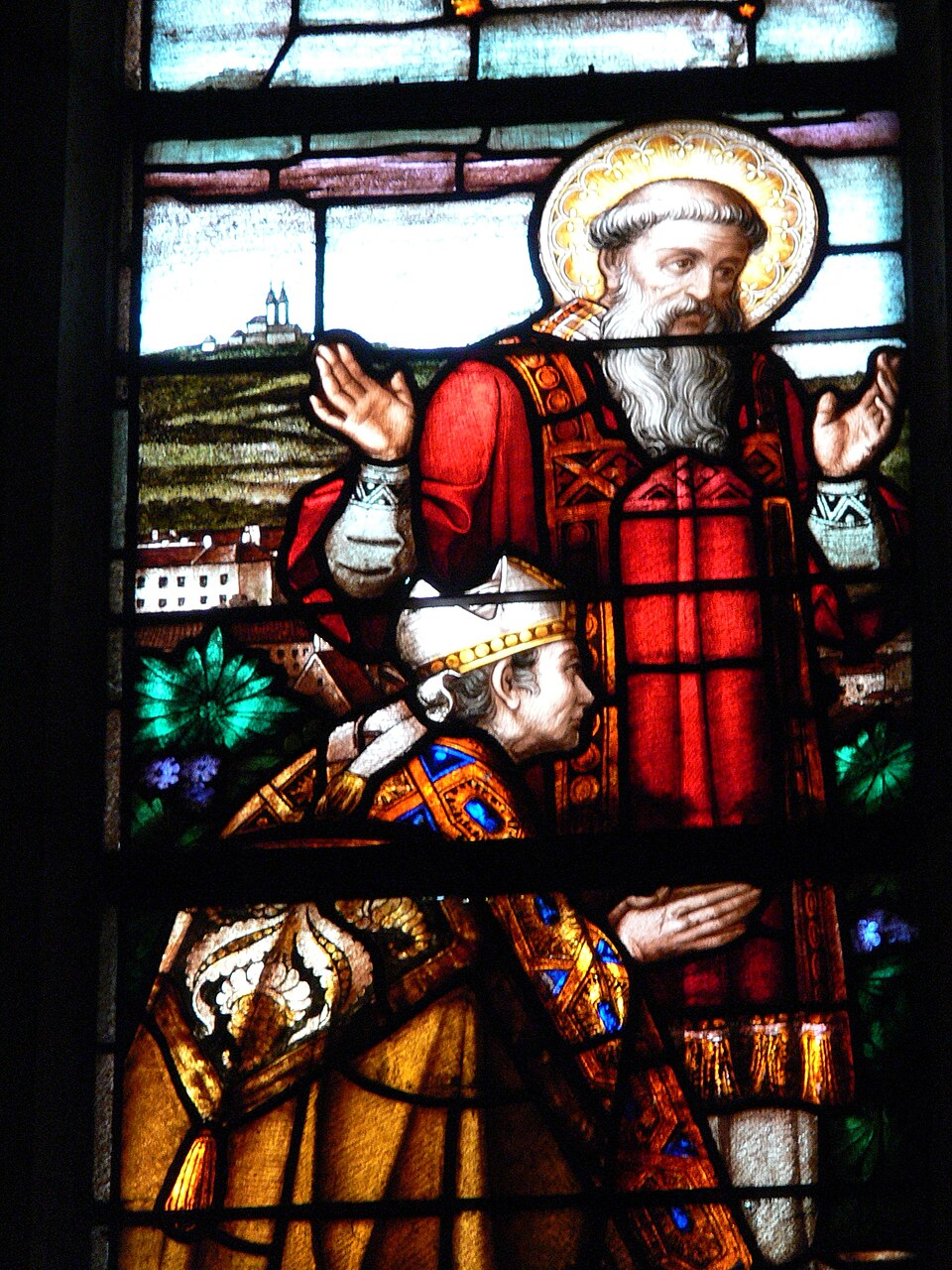 Santoral católico Cristograma IHS, Vidriera del templo Saint Luke, Danviell Ohio santísimo Nombre de Jesús.[5] san Antero, papa (f. 236). santos Teopempo y Teonas de Nicomedia, mártires (f. c. 304). san Gordio de Cesarea,…