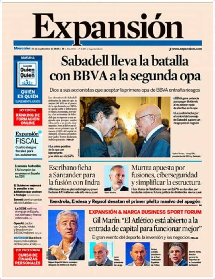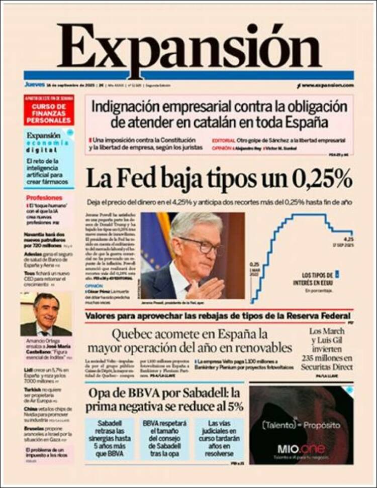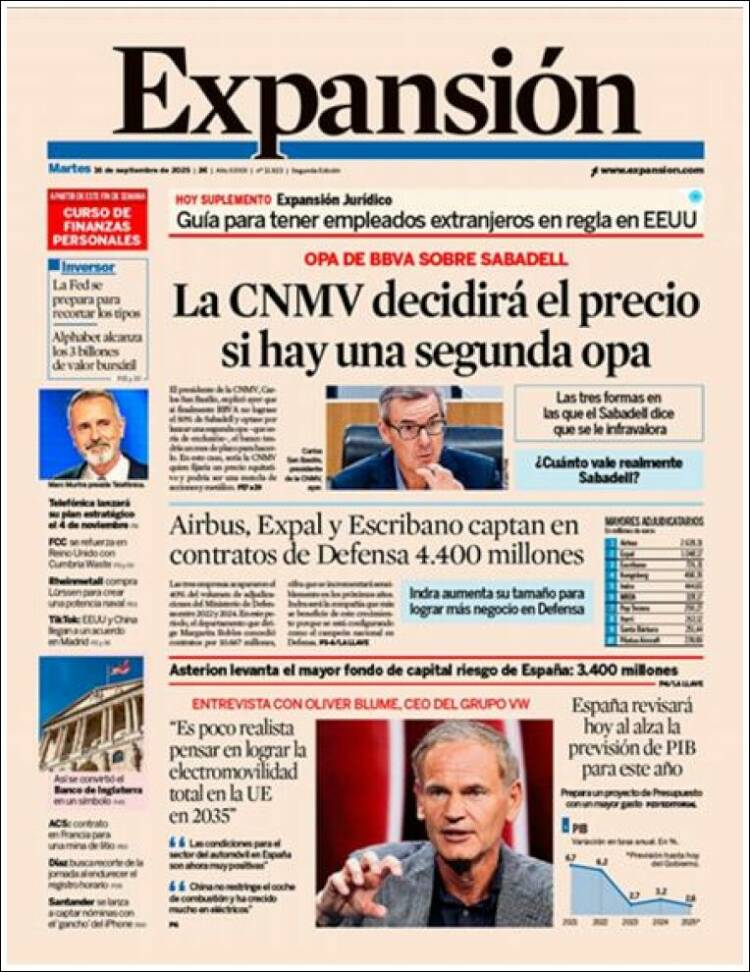 Portada del diario EXPANSIÓN del día 25/09/2025