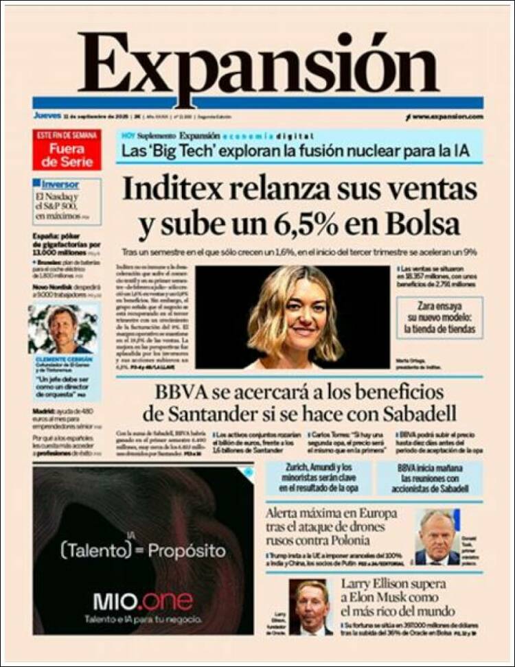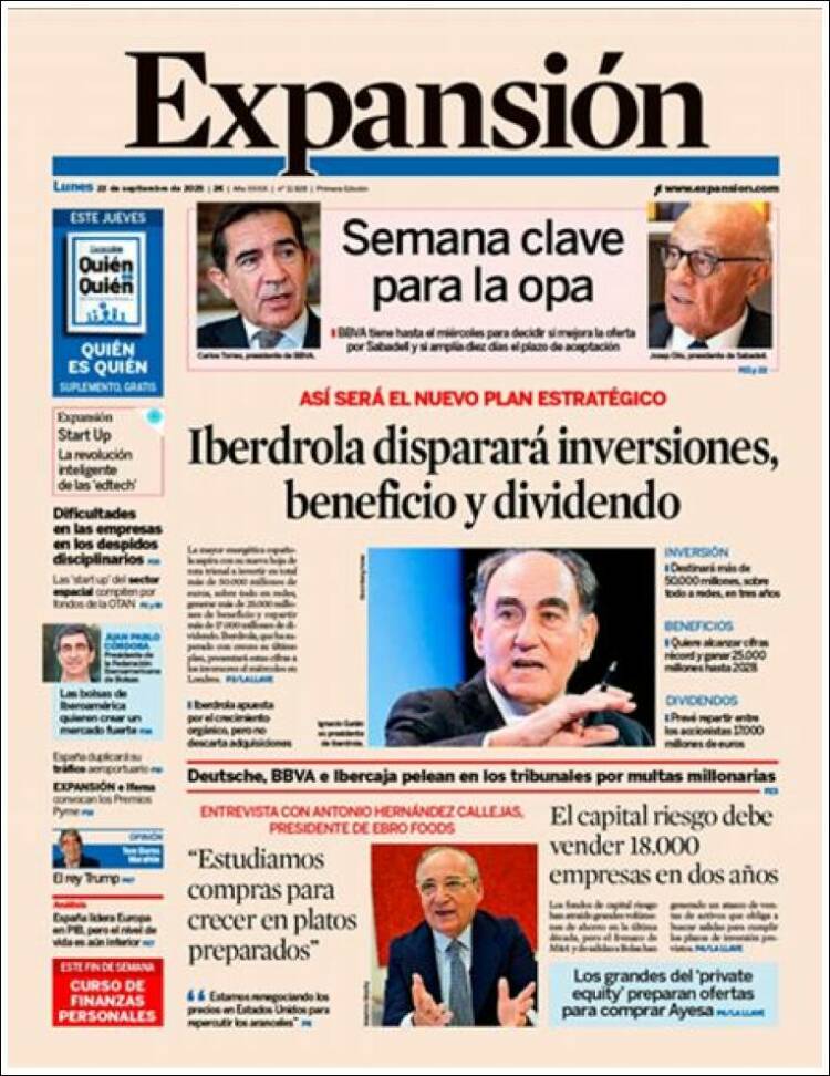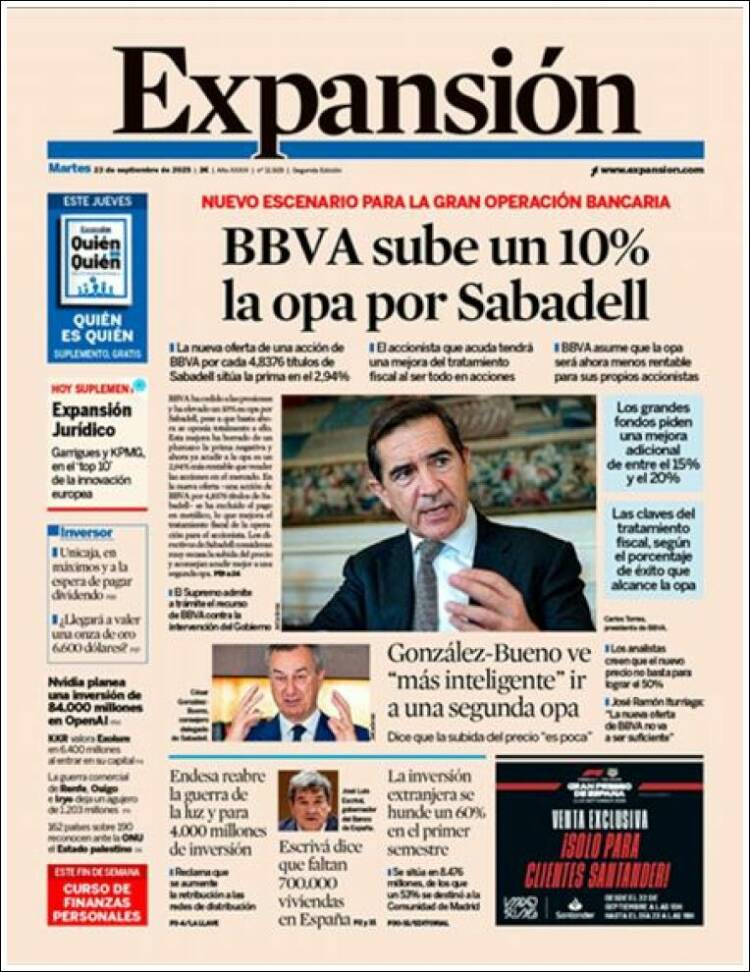 Portada del diario EXPANSIÓN del día 23/09/2025