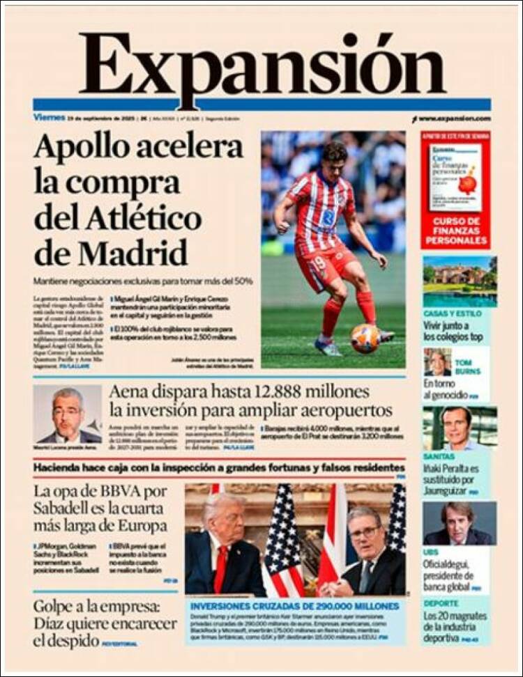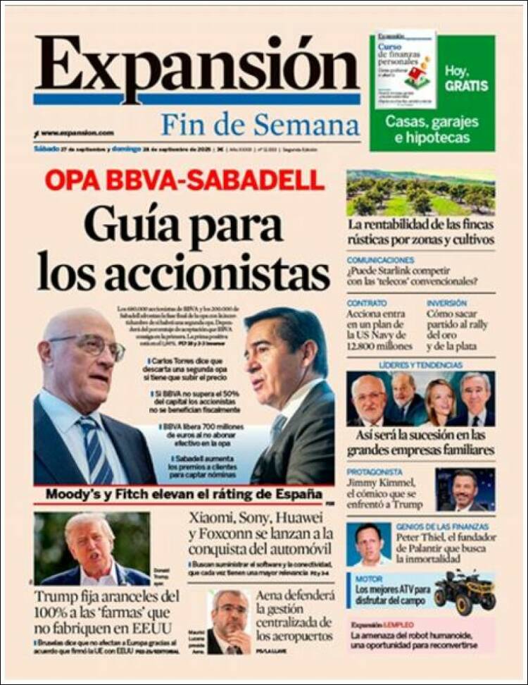 Portada del diario EXPANSIÓN del día 26/09/2025