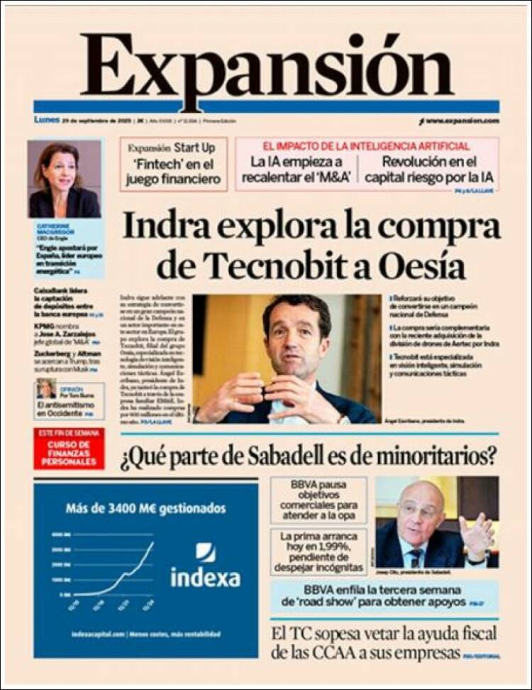 Portada del diario EXPANSIÓN del día 29/09/2025