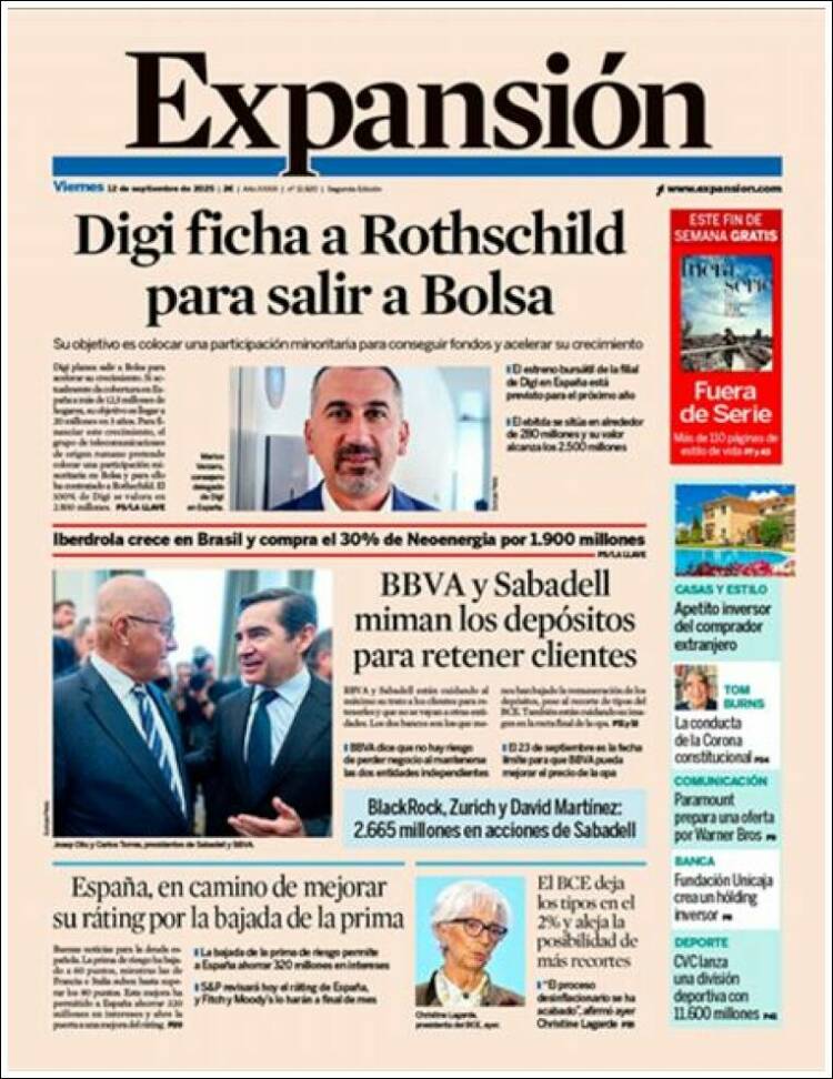 Portada del diario EXPANSIÓN del día 12/09/2025