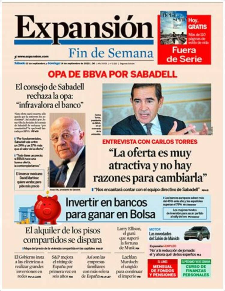 Portada del diario EXPANSIÓN del día 13/09/2025