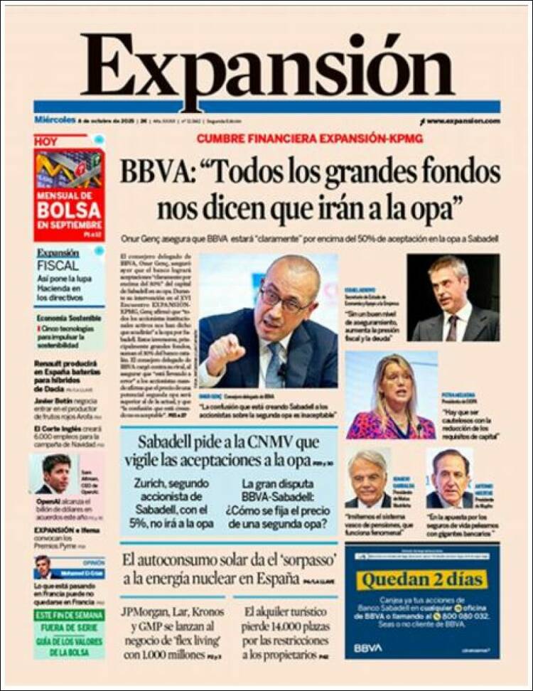 Portada del diario EXPANSIÓN del día 8/10/2025
