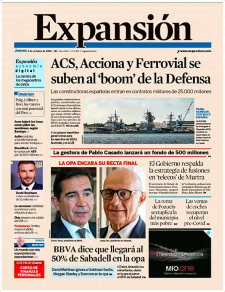 Portada del diario EXPANSIÓN del día 2/10/2025