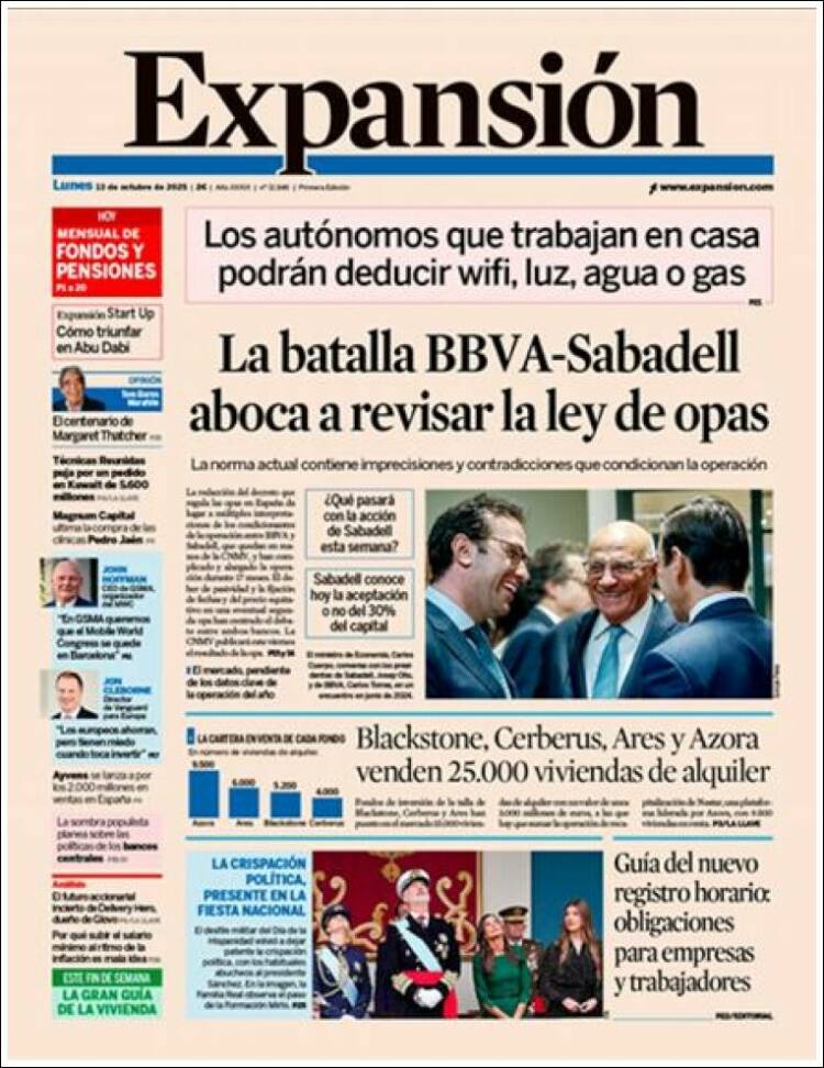 Portada del diario EXPANSIÓN del día 13/10/2025