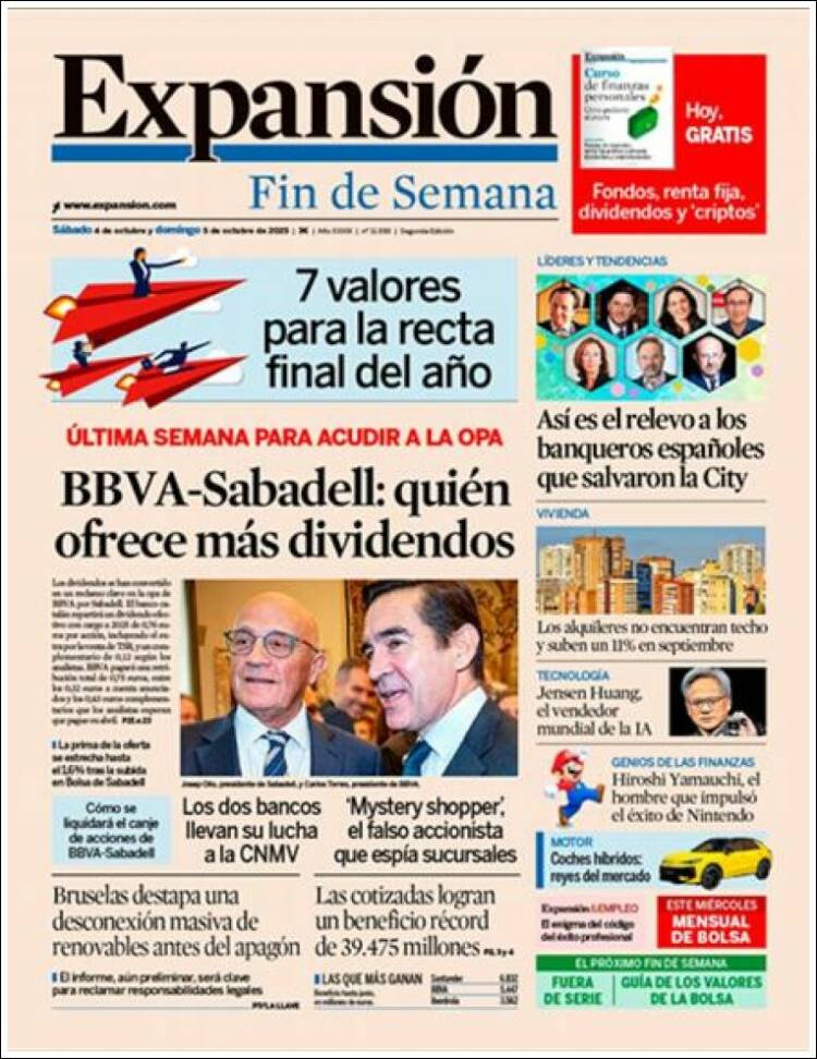 Portada del diario EXPANSIÓN del día 4/10/2025