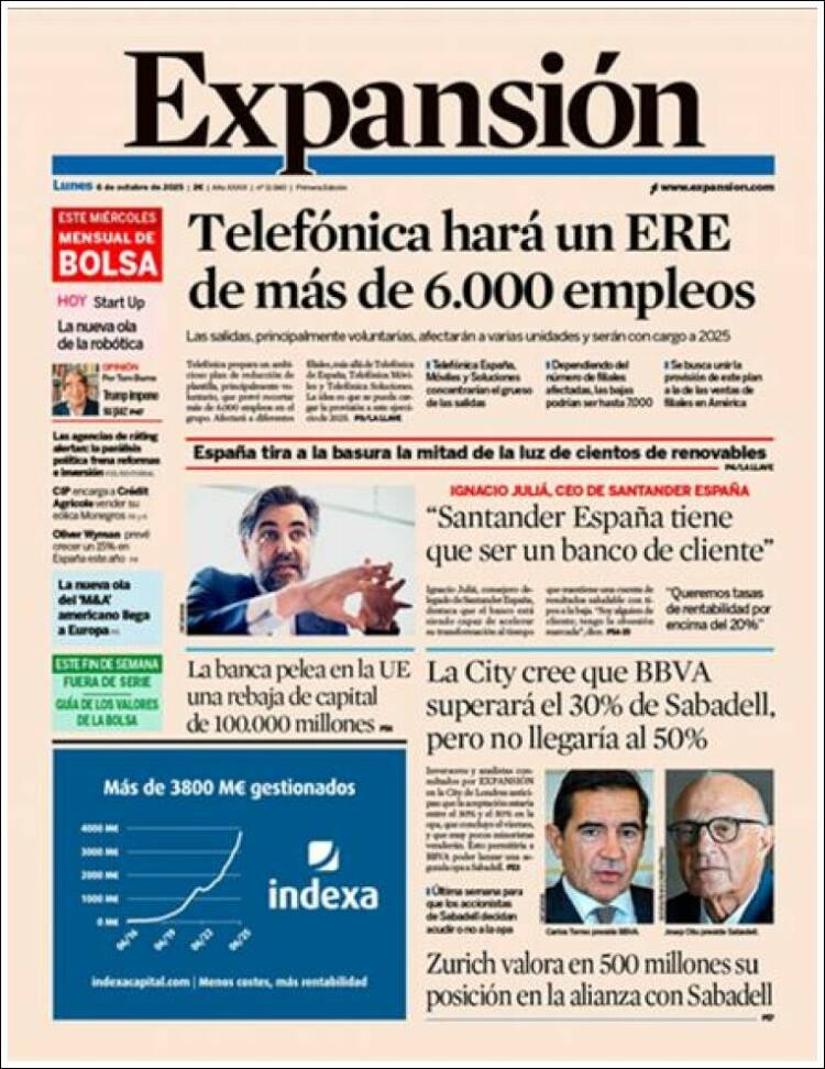 Portada del diario EXPANSIÓN del día 6/10/2025