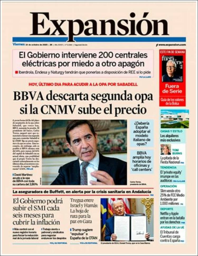 Portada del EXPANSIÓN del día 10/10/2025