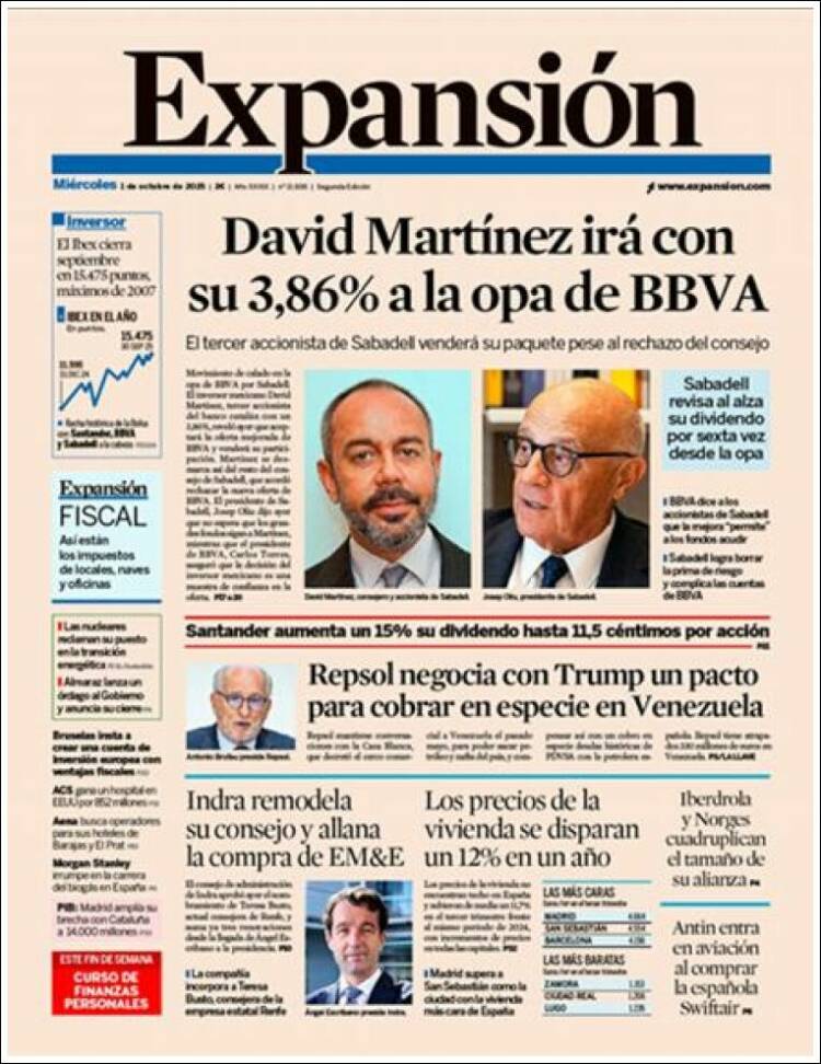 Portada del diario EXPANSIÓN del día 01/10/2025