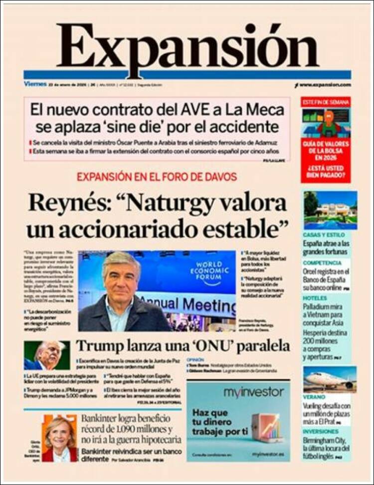 Portada del diario EXPANSIÓN del día 23/01/2026