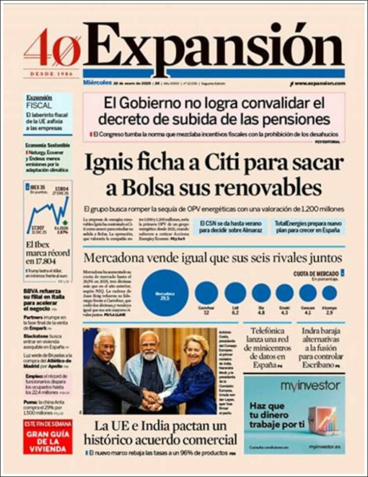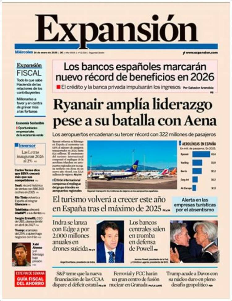 Portada del diario EXPANSIÓN del día 26/01/2026