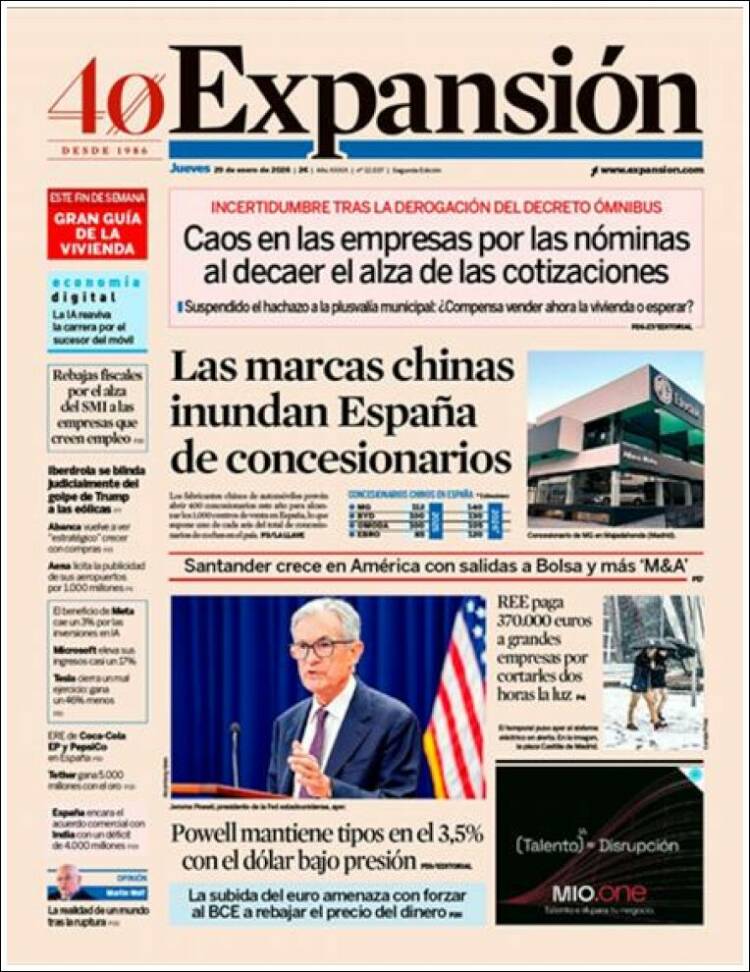 Portada del diario EXPANSIÓN del día 29/01/2026