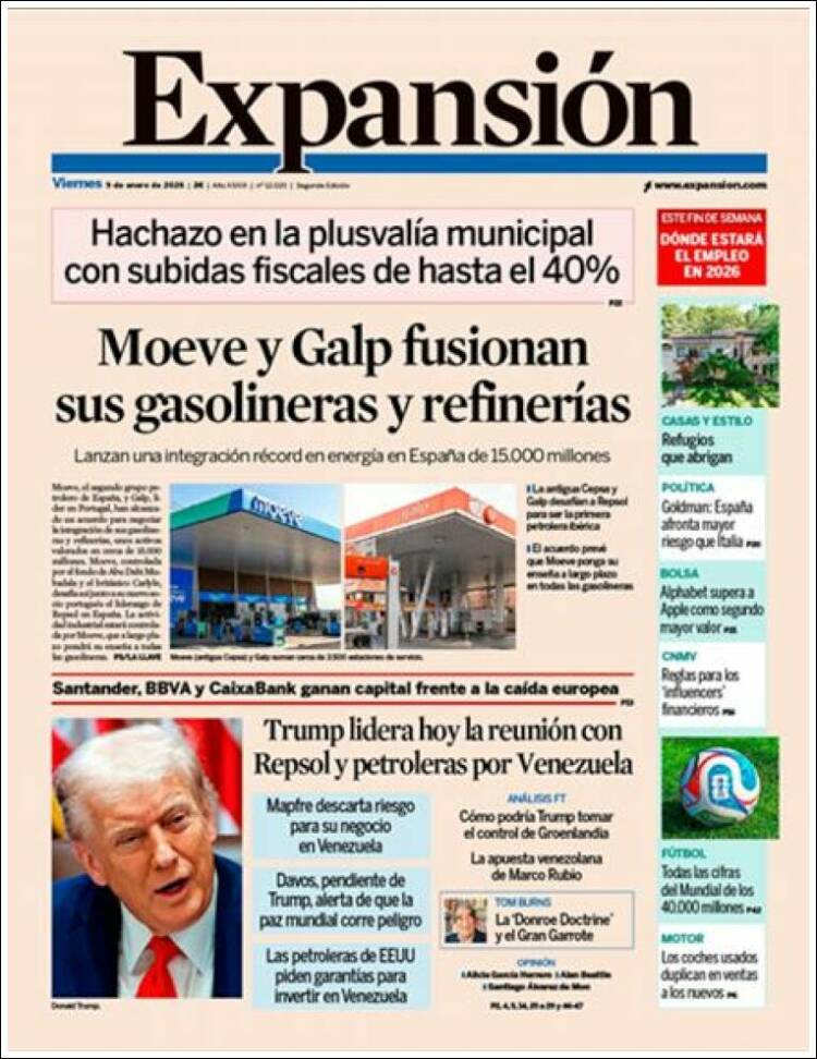Portada del diario EXPANSIÓN del día 9/01/2026