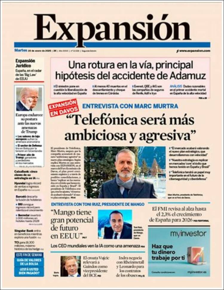 Portada del diario EXPANSIÓN del día 20/01/2026