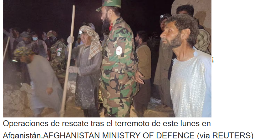 El temblor daña la Mezquita Azul en Mazar-e-Sharif, uno de los templos más sagrados del país ¡Operaciones de rescate tras el terremoto de este lunes en Afganistán.AFGHANISTAN MINISTRY OF DEFENCE…