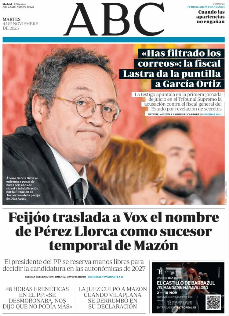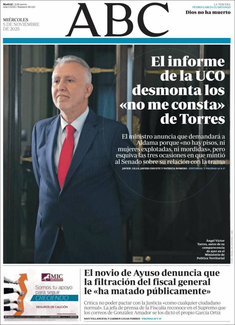 Portada del diario EL MUNDO del día 12/ 11/2025
