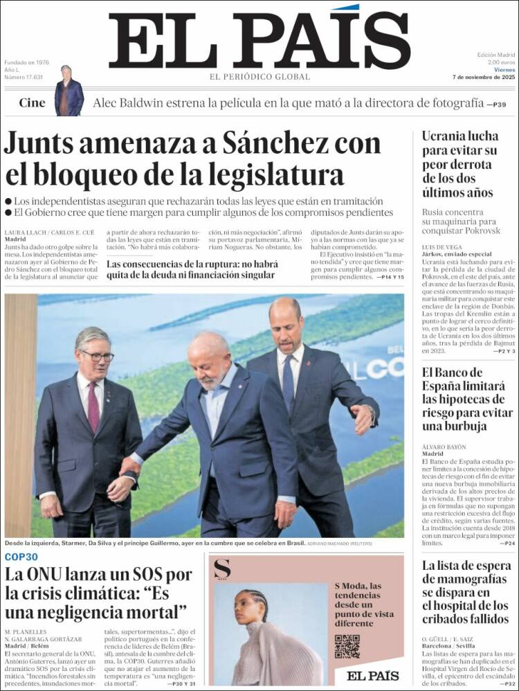 Portada del diario EL PAÍS del día 12/ 11/2025