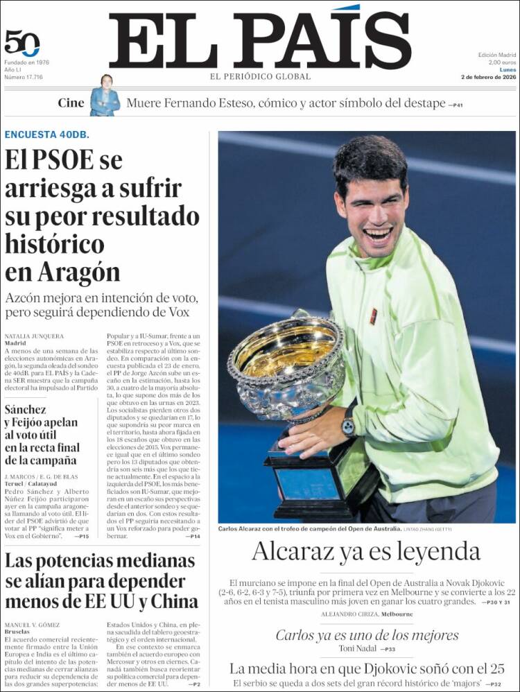 El tenista murciano se impone a Djokovic en la final del Open de Australia (2-6, 6-2, 6-3 y 7-5), y se convierte en el jugador más joven de la historia…