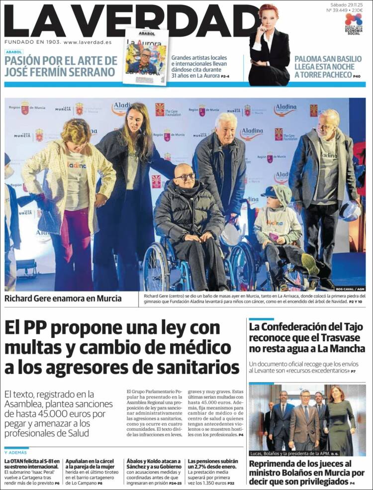 Portada del diario LA VERDAD DE MURCIA del día 289/11/2025