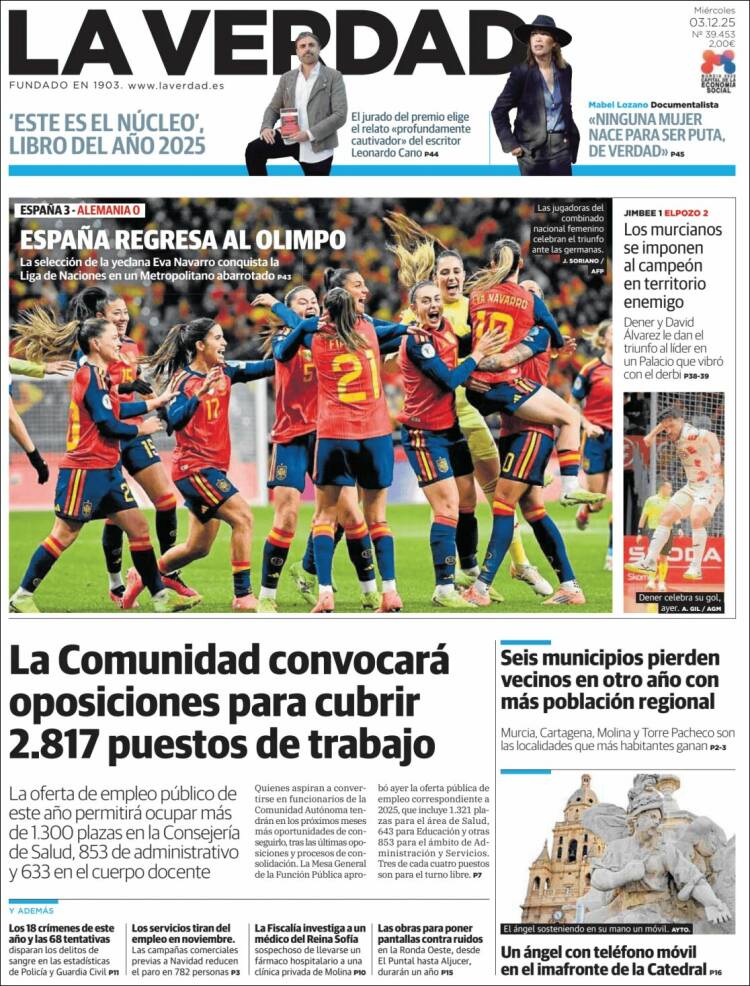 Portada del diario LA VERDAD DE MURCIA del día 3/12/2025