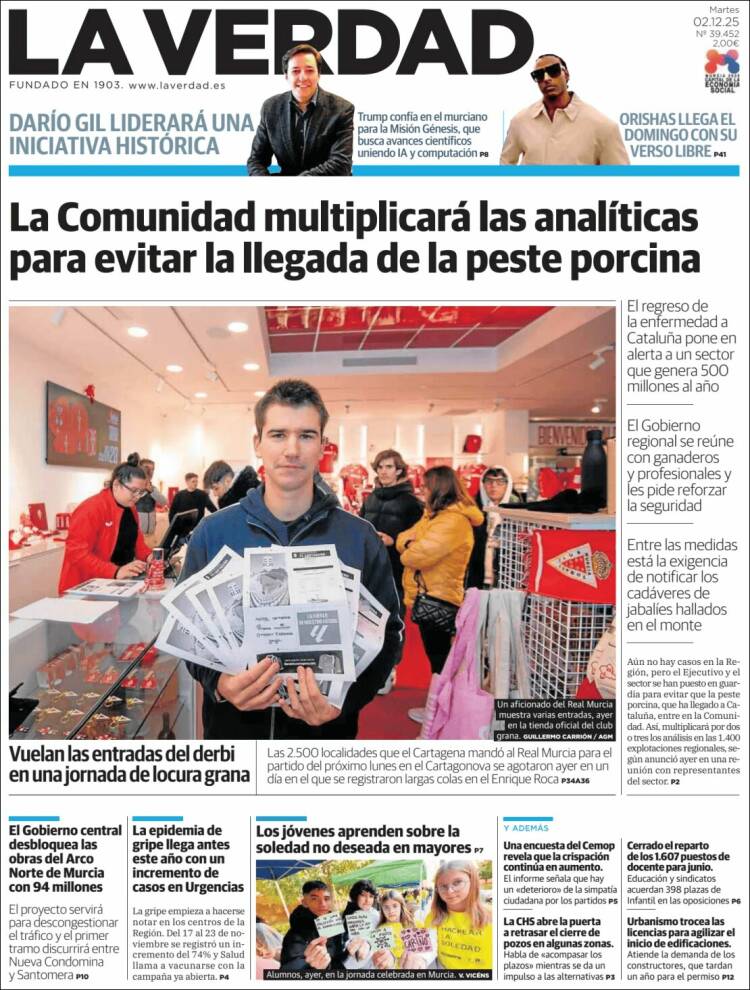 Portada del diario LA VERDAD DE MURCIA del día 2/12/2025