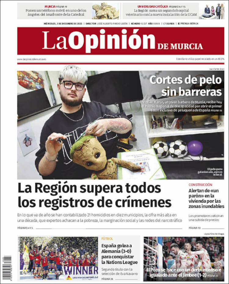 Portada del diario LA OPINIÓN DE MURCIA del día 3/12/2025
